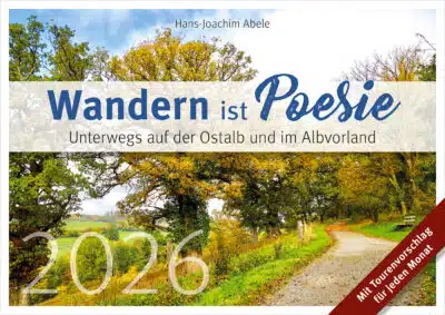 Mit zwölf Wanderungen auf der östlichen Schwäbischen Alb und mit Abstechern ins Albvorland führt Hans-Joachim Abele durch das Jahr 2026. Auf der Vorderseite der Kalenderblätter zeigt er die Schönheit der Ostalb in zur Wanderroute passenden Momentaufnahmen – begleitet von poetischen Versen im Rhythmus der Jahreszeiten. Die Rückseiten dienen als Wanderführer mit Karte und Wegbeschreibung, Kurzinfos und Tipps. So kommt Monat für Monat Wanderlust auf, die direkt vor der Haustür gestillt werden kann.